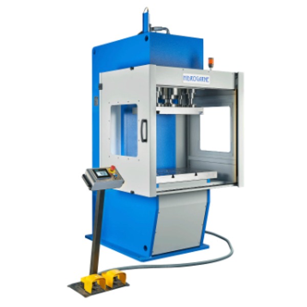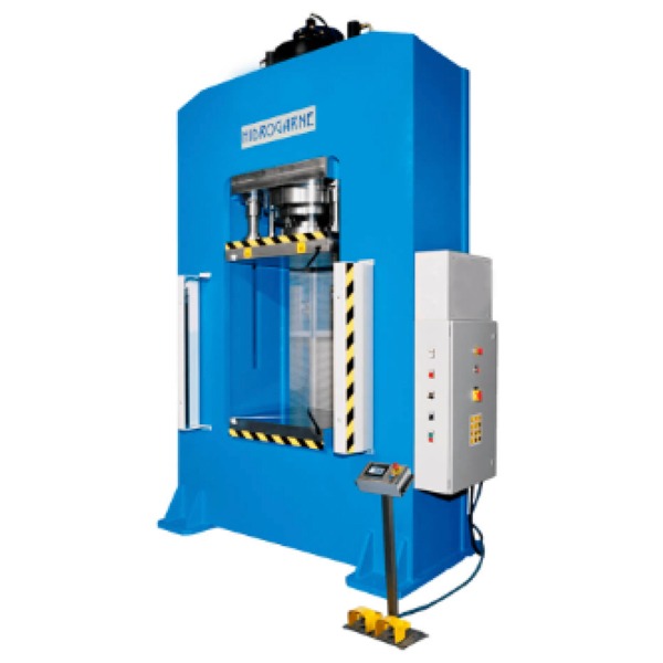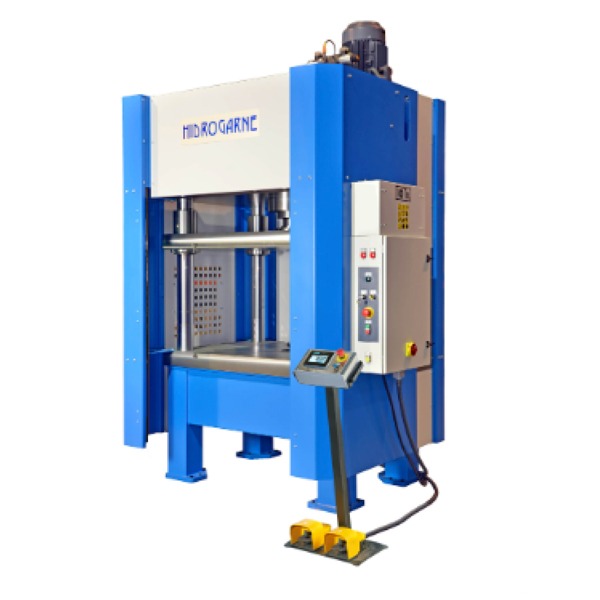 Capacidades de 50 a 150 toneladas. Ideales para operaciones de estampado, troquelado y embutición en procesos que requieren precisión y eficiencia. - Prensas hidráulicas para embutición y estampado (Series M/NC y R/NC)